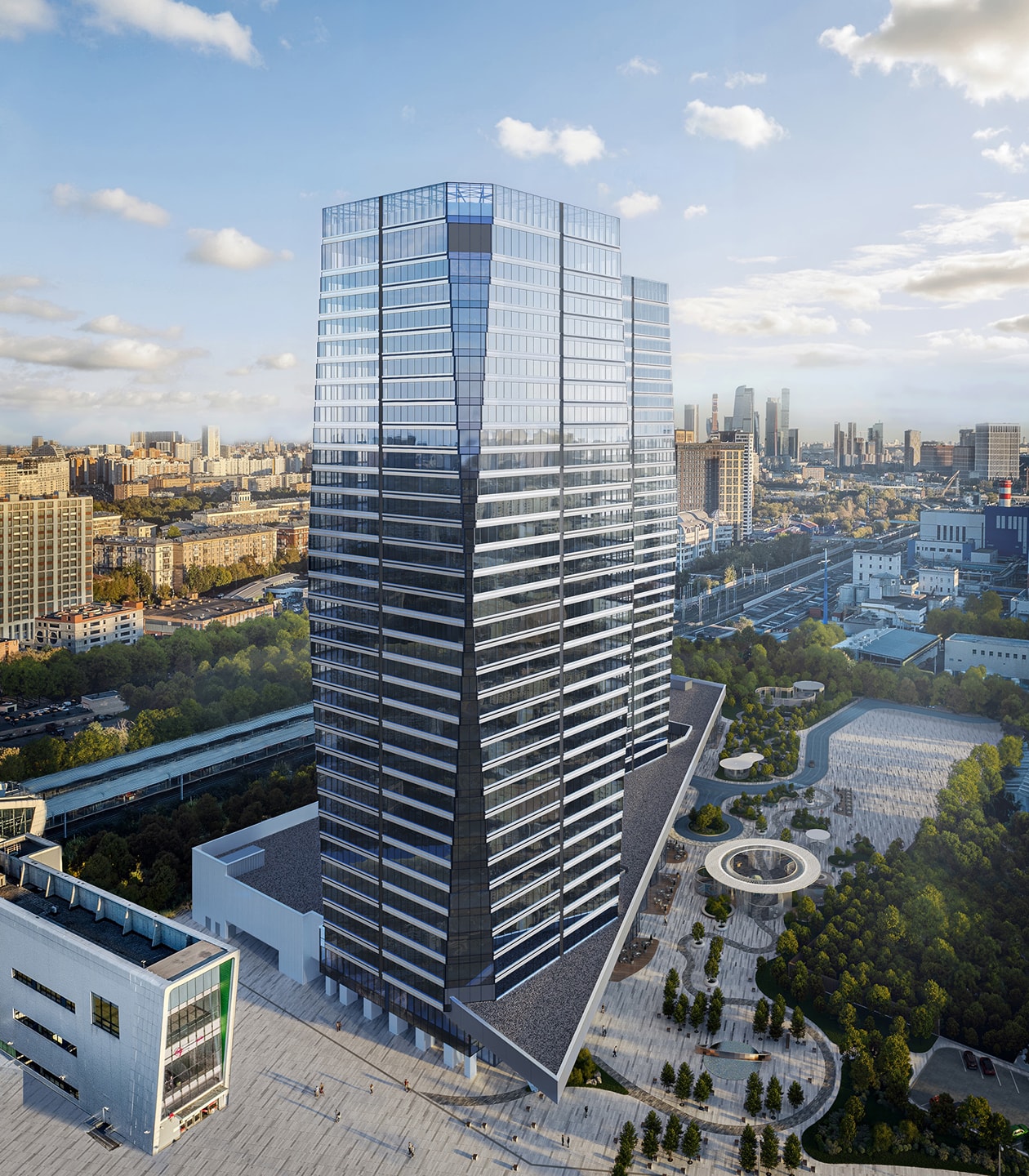 Оригинальная форма кристаллообразных башен делового центра задает новую доминанту района, открывая резидентам впечатляющие виды на город.