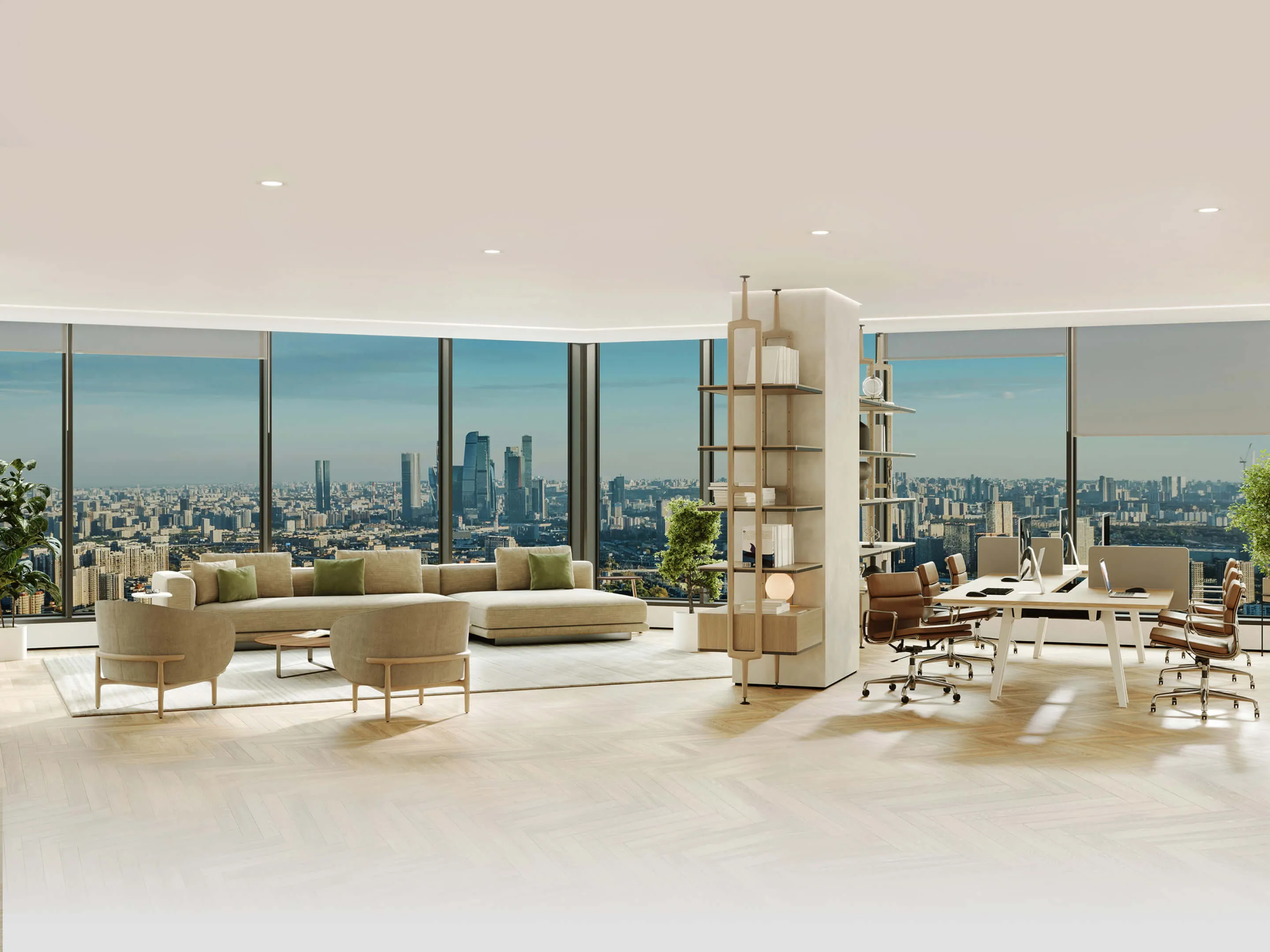 БЛАГОДАРЯ ШИРОКОМУ УГЛУ ОБЗОРА ВПЕЧАТЛЯЮЩИЕ ПАНОРАМЫ СТОЛИЦЫ УКРАСЯТ ВАШ ОФИСВПЕЧАТЛЯЮЩИЕ ПАНОРАМЫ СТОЛИЦЫ УКРАСЯТ ВАШ ОФИС. ВЫБИРАЙТЕ ВИД НА ММДЦ «МОСКВА-СИТИ», «ТРИУМФ ПАЛАС» ИЛИ ПАРК И БЛАГОУСТРОЕННЫЙ БУЛЬВАР.