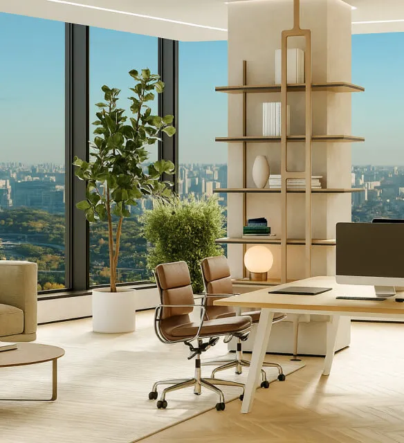 Много света и воздуха, защита от ультрафиолета и энергоэффективность. В угловых офисах - возможность создания видового кабинета руководителя или зоны рекреации для сотрудников.